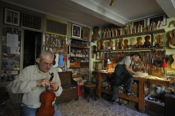Cremona, the Stradivari city of birth, has a long tradition in violin makers; so a lot of workshops are sprowled out all over the city. I decided to visit and to document the workshop of Vladimiro Cubanzi who represent the new generation of violin makers and the one of Stefano Conia, example of long tradition and experience, strenghtened by the attendance of his son, Stefano Junior, who was pleased to acquire the father's skill and to continue his practice and tradition. You can find more details about the above violin makers in their web site.